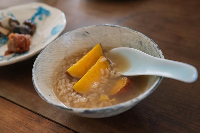 寒い朝は、茶粥であたたまる。