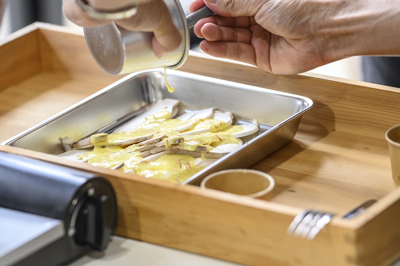 「今回作ったヨーグルトベースのマリネ液は、木の子以外の具材だと、鶏肉を漬けるのもおすすめです。ジップロックにこのマリネ液と鶏肉を入れて漬け込み、バーベキューに持参して強火で焼くと美味しいタンドリーチキンが出来上がります」