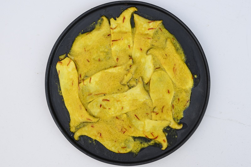 「ビリヤニにはターメリックを使いましたが、エリンギのソテーで使ったサフランを使って木の子の炊き込みご飯を作るのもおすすめです。サフランは少量で十分に風味付けできるので残ったぶんの使い道に悩む方も多そうですが、僕はよくサフランを入れた生クリームで和えたムール貝のパスタを作ります。サフランの風味はムール貝と相性抜群、家の子供達も大喜びする美味しさなので一度試してみて欲しいです」