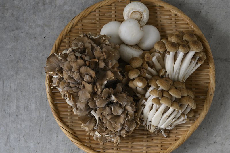 「今日のテーマ食材は木の子です。人間の体のしくみって、本当に自然と上手く連動していまして。紫外線が強くなり始める4月末とか、ゴールデンウィーク前あたりからは抗酸化力の高い山菜が旬を迎えて、その山菜を食べることで体内から紫外線ダメージに備えることができます。5月には、カリウムをはじめ体内の水分の巡りを促してくれる栄養素を豊かに含んだ海藻がたくさん獲れるようになり、湿度が高くなる梅雨に備えた献立に役立ってくれます。そして木の子は、秋の旬。たくさんの食物繊維とアミノ酸を含んでいる食材です。体の中に入ったアミノ酸は毛細血管を通じて肌に届き、ターンオーバーを繰り返す角層において、角質細胞が水分を抱え込むためのスポンジを作ってくれます」
