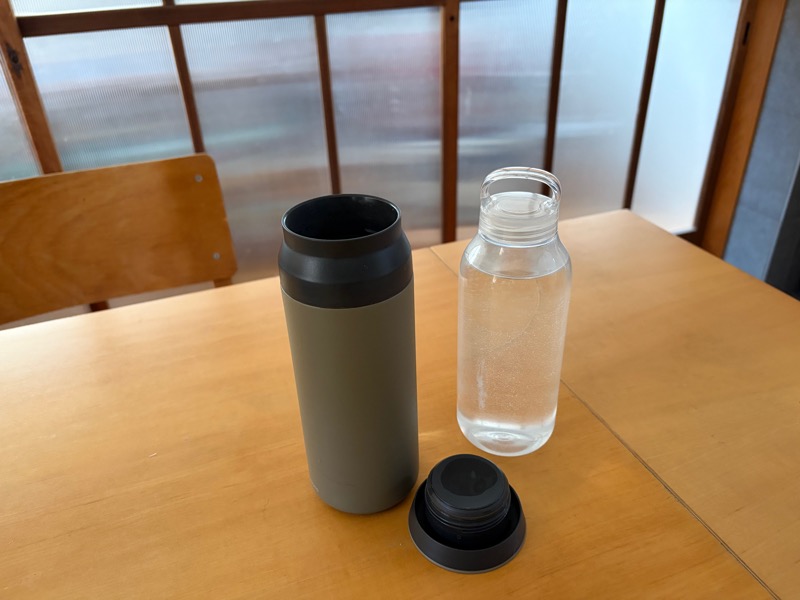 お店に出る日は、この2本で合計1ℓになるようにして持ち、帰るまでになるべく飲み切ることを意識しています。忙しい日ほど水分補給をうっかり後回しにしがちなので、あらかじめ量を決めて見えるところに用意しておくと、目についた時にこまめに補給しながら、飲み切るペースの配分もできます。