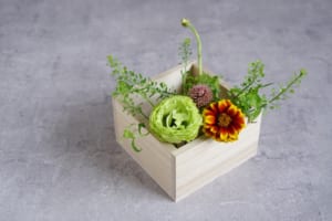 1回目は、みなさんのご自宅にもありそうな空き瓶を使用したお花のアレンジを紹介したいと思います。