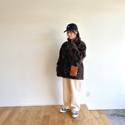 長さを出した斜めがけもお気に入り。左右4つの穴で長さの調節ができるので短くして収まりのいいショルダーバックとしても使えます(オンラインストアの方に画像ありますので良かったらご覧ください)。