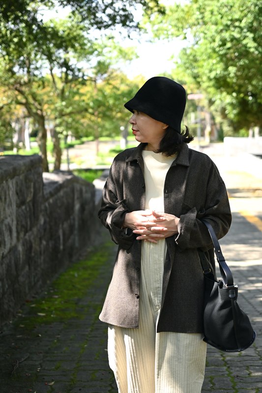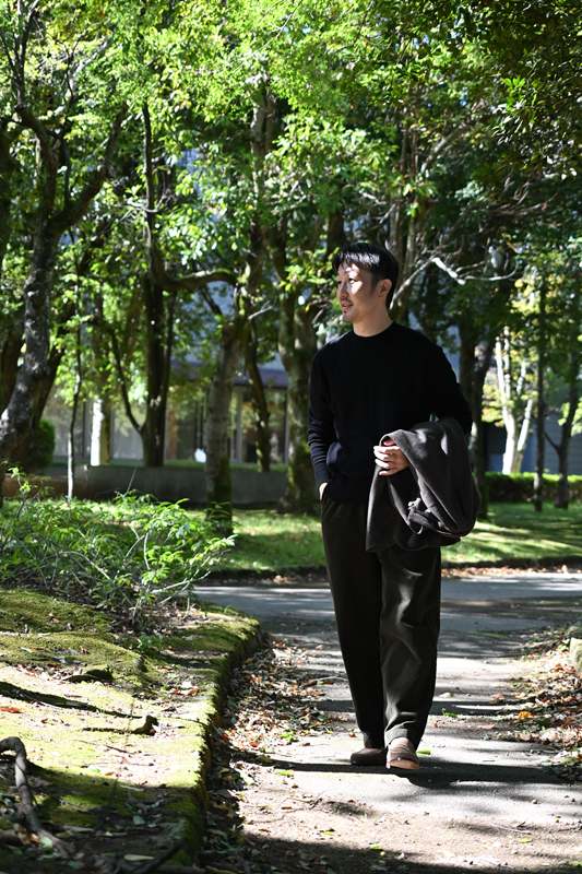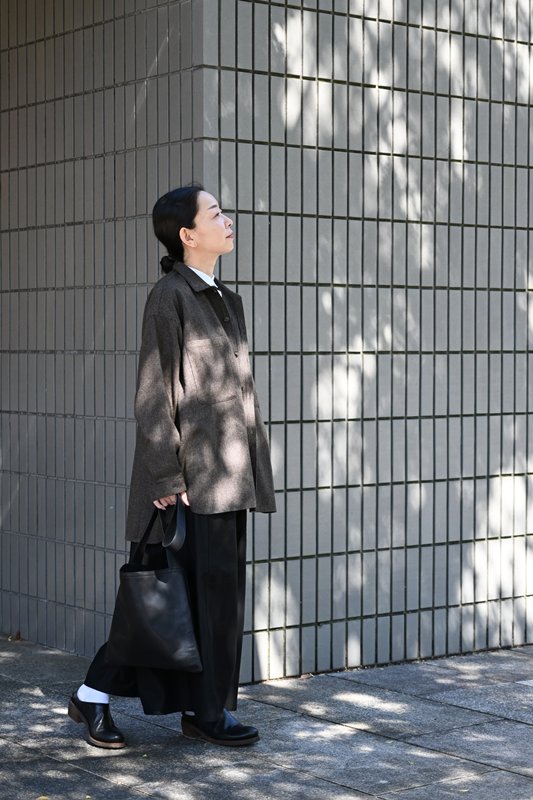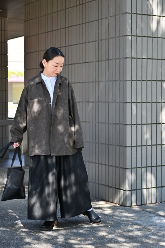 ある日は、白のタートルにスラックス。その上から「YARMO」を羽織れば、落ち着きの中に軽やかさが生まれる。またある日は、カーキのコーデュロイパンツに黒のニット。ブラウンを重ねると、自然の中に溶け込むような穏やかさが出る。