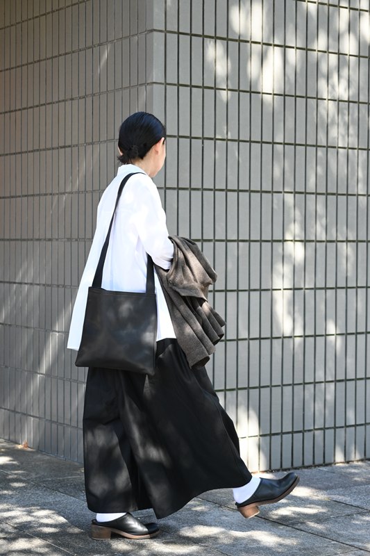小物は黒でまとめて、少し引き締める。全体に落ち着きが出て、秋らしいバランスに。