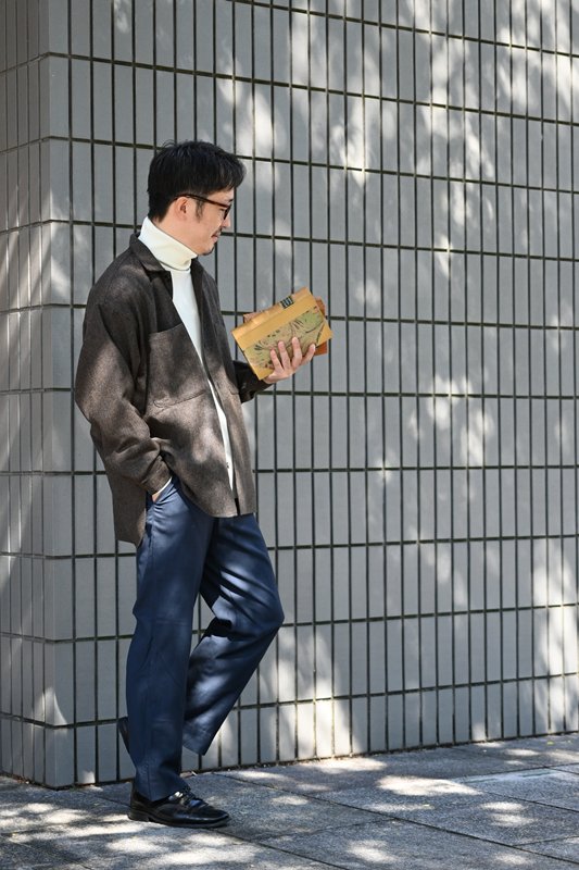 このウールシャツもそう。ボタンを上まで留めれば真面目に、前を開ければ軽やかに。着る人の気分で表情が変わるあたり、まるで英国紳士が作った“遊び心”のようにも思えます。