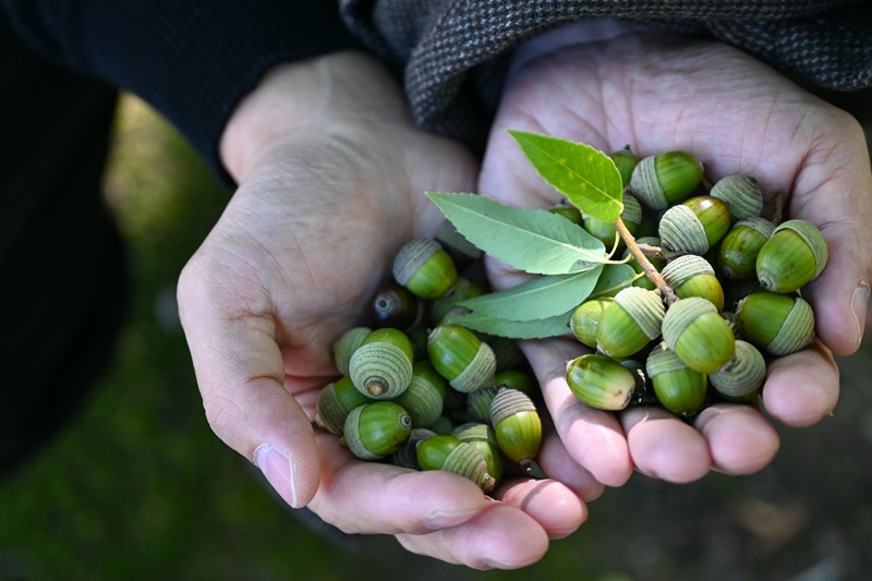 風が変わり、日差しがやわらぐころ。木の下には、どんぐりがそこらじゅうに転がっています。拾ってみれば、すべすべした感触がなんとも心地いい。「どっちがいい形を見つけられるか」なんて、ついつい夢中になってしまう(笑) 。