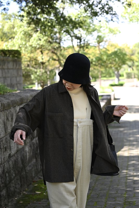 長めの着丈はユニセックスならでは。オーバーシャツが持つ、包まれるような安心感があります。