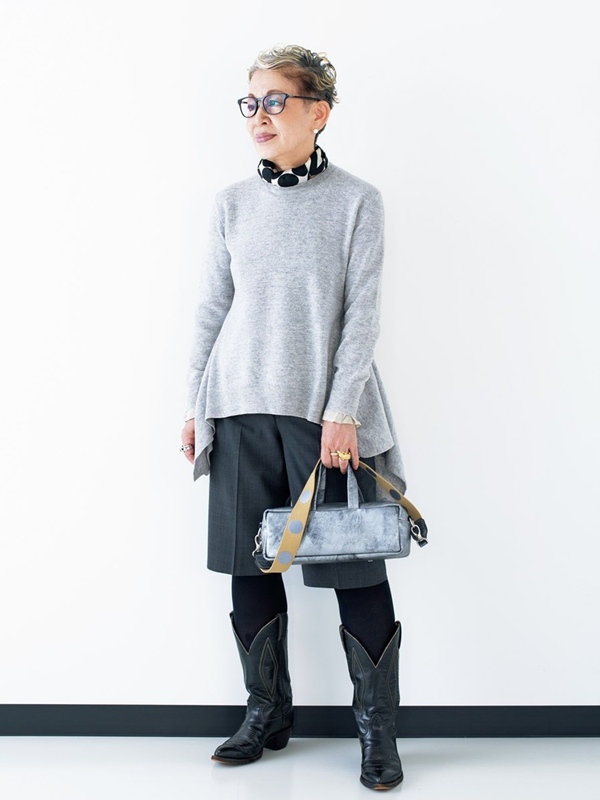 シルバーはグレイッシュなスタイルに合わせて。ストラップのドット柄が大人の遊び心を感じさせる。