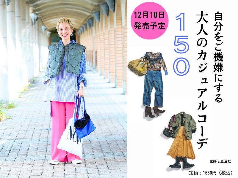 パーソナルスタイリスト 古賀みどりさんが、大人のカジュアルを上手に着こなすための基本のアイテムや、コーディネート例を紹介する著書『自分をご機嫌にする大人のカジュアルコーデ150』を現在制作中。2025年12月10日に発売予定です。全国の書店や、Amazonや楽天ブックスなどネット書店で予約を受け付け中!