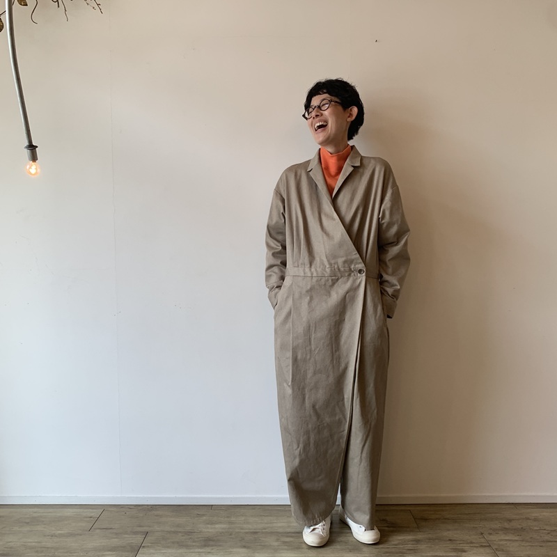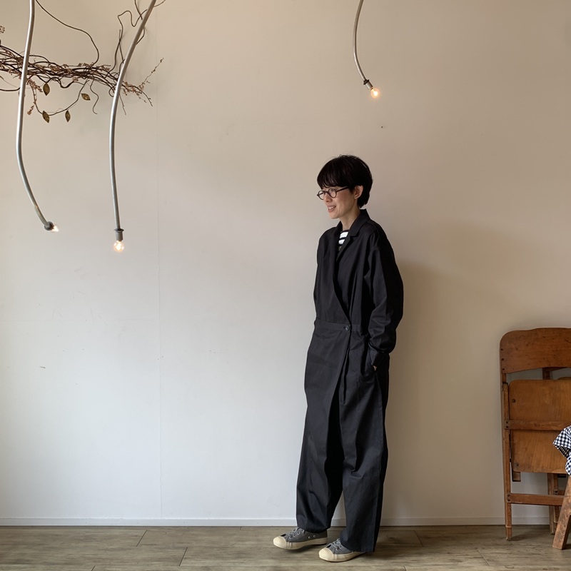 中でも、みなさんにぜひ見ていただきたいのが、こちらのジャンプスーツ! そう、いわゆる“つなぎ”です! ジャンプスーツなんて言葉、昔は耳にしたことなかったなー。今日も“つなぎ”って言いたいところですが、我慢して我慢して、“ジャンプスーツ”のご紹介をしていきますね。