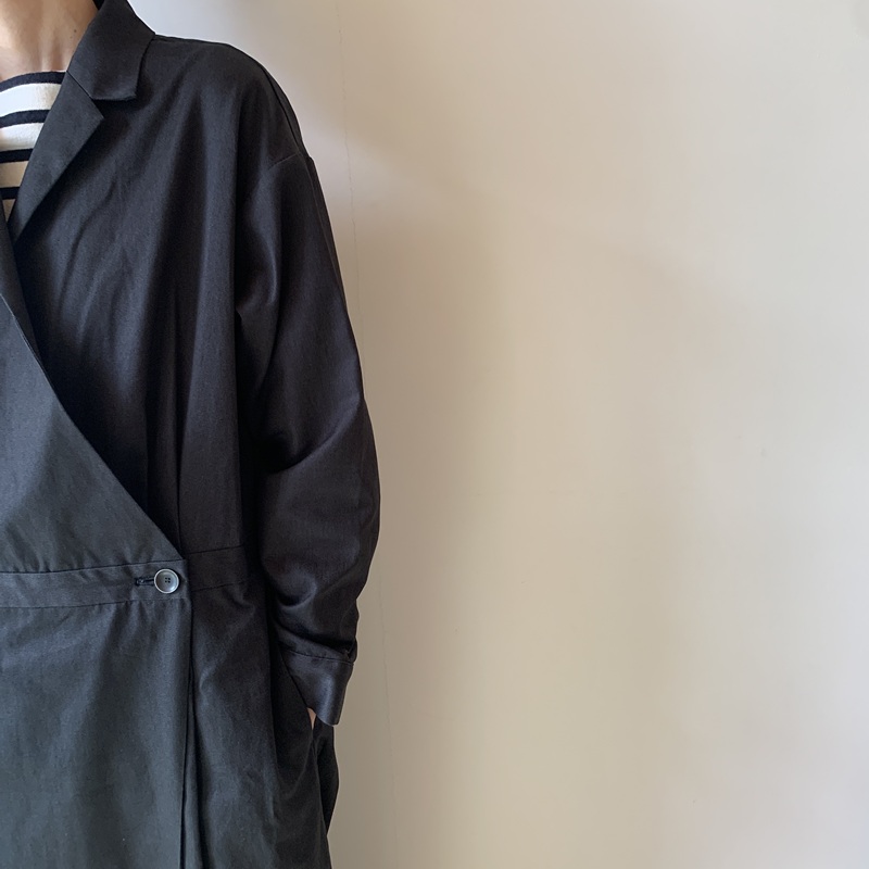 ショートコートと合わせると、まるでワイドパンツと組み合わせたように見えます。これなら気負いなくジャンプスーツにトライすることができそうです。