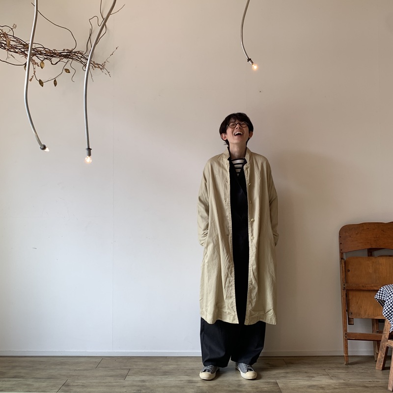 おっと、お気づきですね! そうなんです。この着用写真は何日かに分けて撮っているので、妻の髪がパーマだったりそうでなかったりと急に変わっています。集中して見られないわーという方も、コーディネートのほうに注目して引き続き見ていただけたら幸いです。