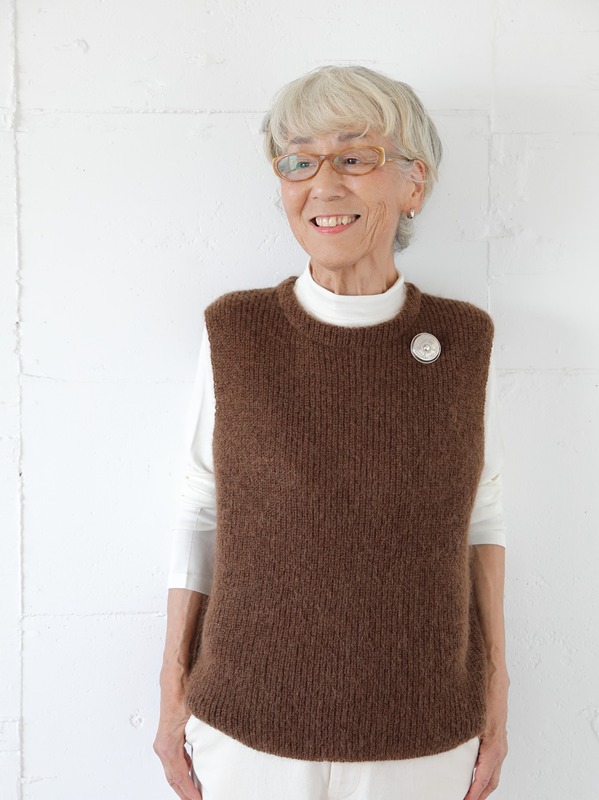 『大人になったら、着たい服』でおなじみの林 多佳子さんや桃井しのぶさんの着こなしにも注目が集まる兵庫・苦楽園のセレクトショップ「パーマネントエイジ」。糸を2本どりして編み上げることで、ふんわりした肌ざわりに仕上げたモヘア混のニットベストは、ほどよい毛足の長さで暖かさも抜群。いつものトップスに重ねるだけでコーディネートが引き締まり、肌寒い日の体温調節にもお役立ちなのが嬉しいところ。