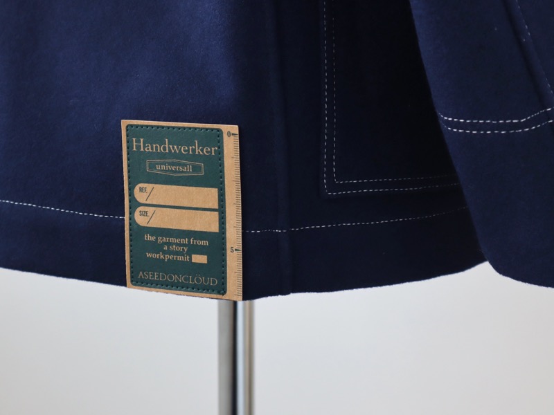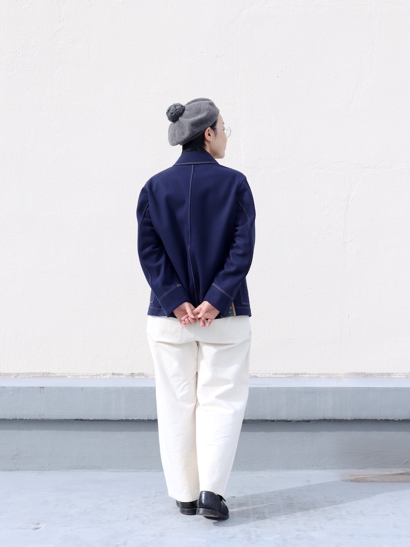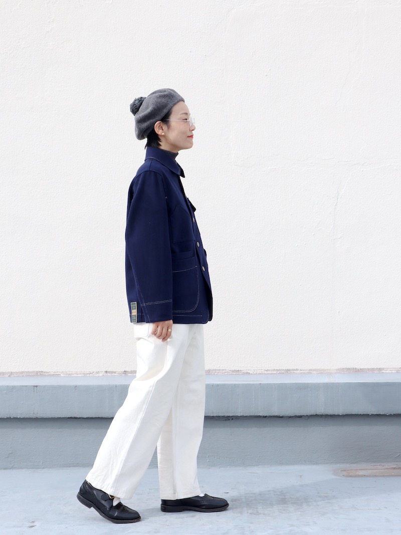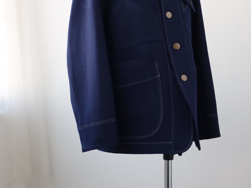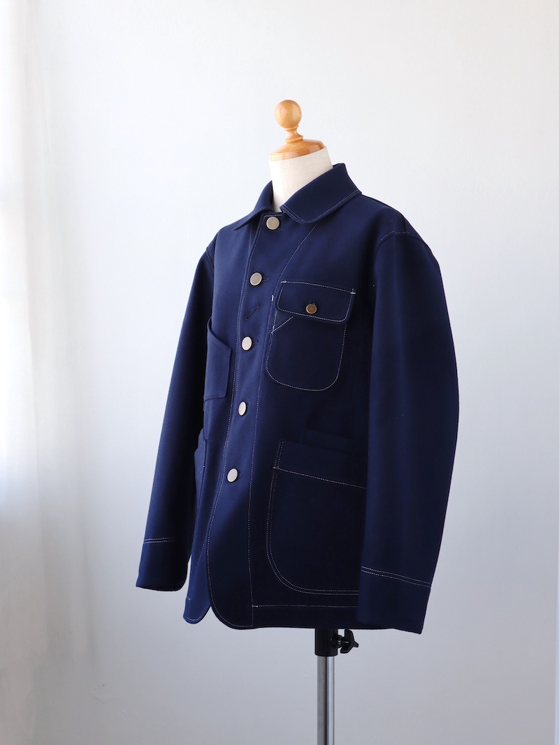 Handwerker(ハンドベーカー)のミーティングジャケット。クラシックなカバーオールをデザインソースに、大小さまざまなポッケを適材適所に配することで、手ぶらでのお出掛けを可能にしました。