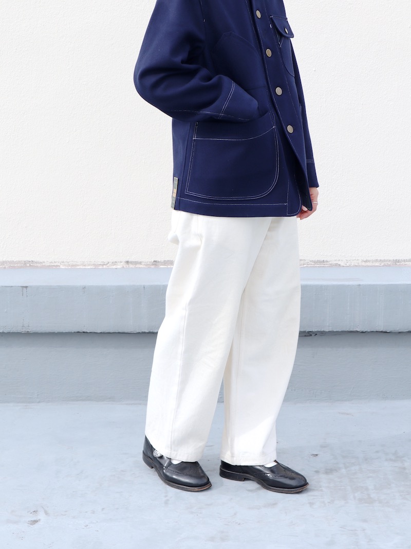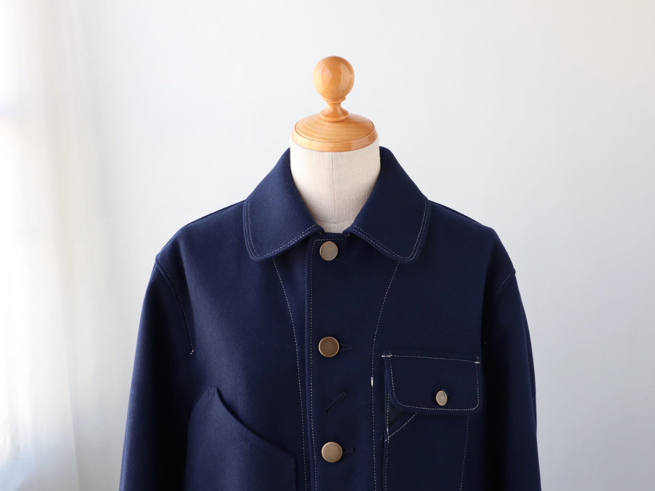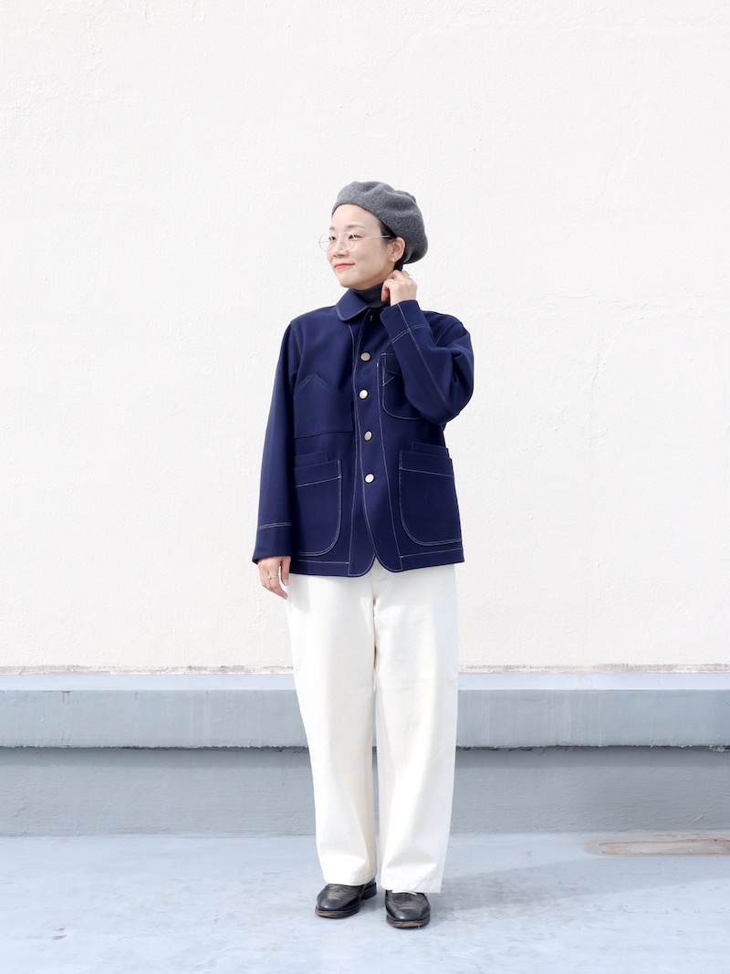 Handwerker(ハンドベーカー)のミーティングジャケット。クラシックなカバーオールをデザインソースに、大小さまざまなポッケを適材適所に配することで、手ぶらでのお出掛けを可能にしました。