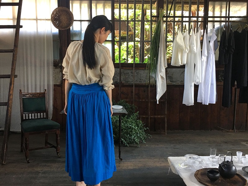 アパレルの仕事に携わって20年が経った頃、自分が本当に着たい服、日々の中で無理なく心地よく過ごせる服を作りたいという思いから始まりました。旅や暮らしの中で出会った山岳民族の衣装や、ヨーロッパの農夫や職人たちの作業着を思い浮かべたり、仕事と暮らし、内と外の境界がない日常着。動きやすさの中に、女性らしい凛とした姿が映るような服を目指しています。
