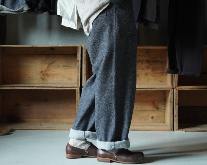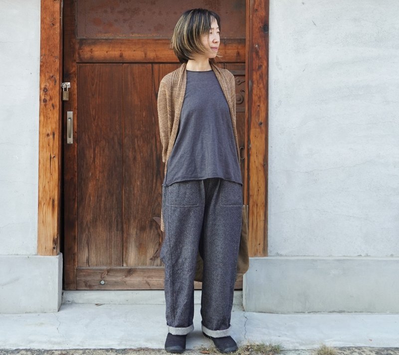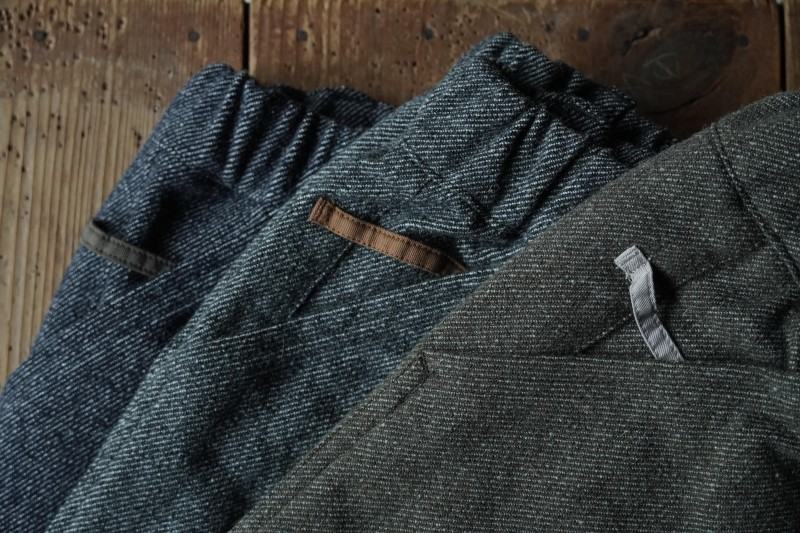 元々は、奥様と一緒に来られたご主人の中で「1年中デニムしか履かない!」という方に、デニム以外も楽しんで履いて頂きたいなと4年前に発売をスタートし、今では夏は軽くて涼しい麻綿の生地、冬はふんわりとあたたかい毛七WOOL。すっかり私たちの定番アイテムとなっています。