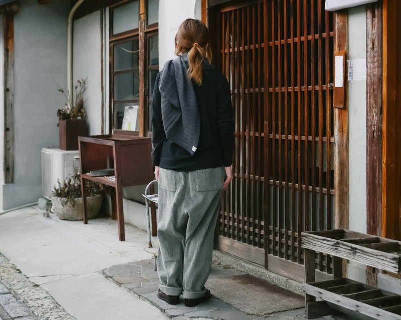 生地は希少性の高い、遠州産地の国産コーデュロイを使用しています。(現在のアパレル業界でコーデュロイというと、ほとんどが中国からの輸入生地となります。)