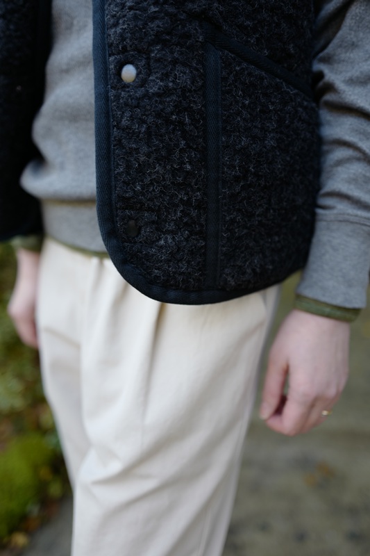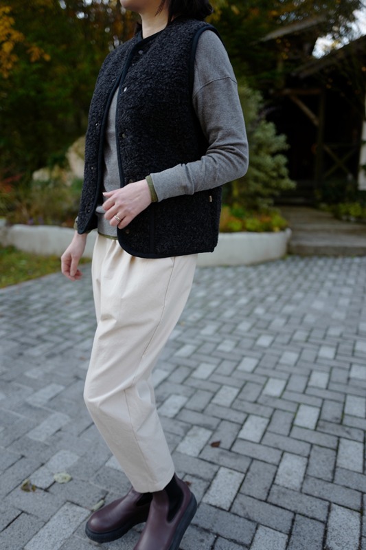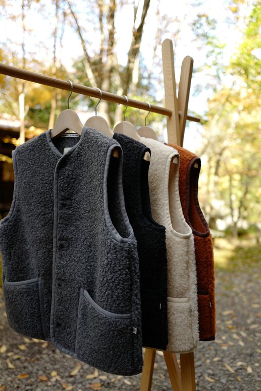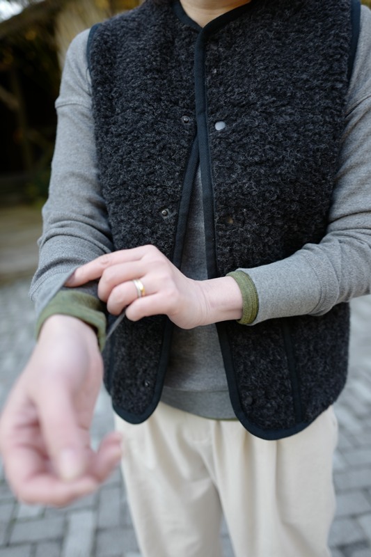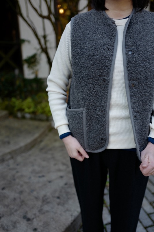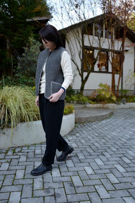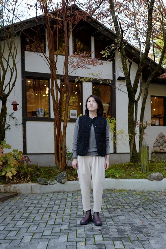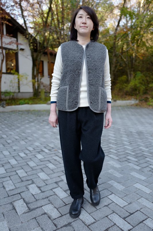 暖かいベストの下には、山暮らしで見つけた「メリノウール×コットン」の“インナー二枚重ね”を。