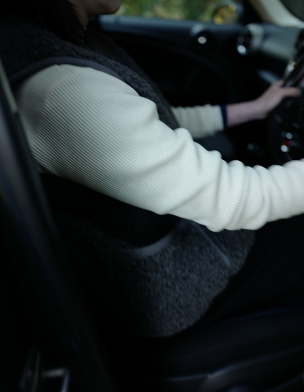 私自身、冬の山暮らしの服として、自然にワードローブに加わりました。運転中でも脱ぎ着がラクで、後ろ丈が長くないのでお尻の下敷きになりません。