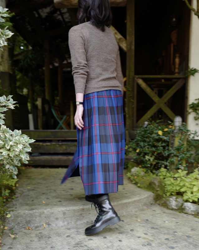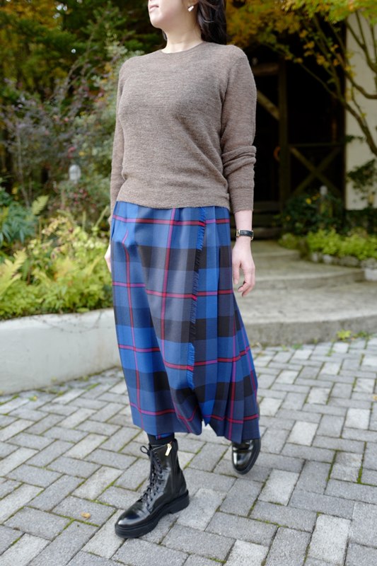 チェック柄は大柄だとすっきりと見え、コーディネートしやすくなります。