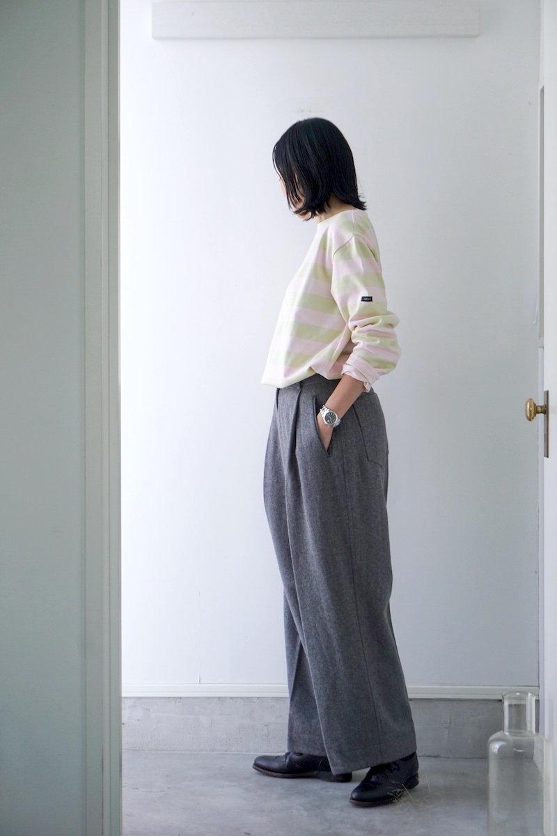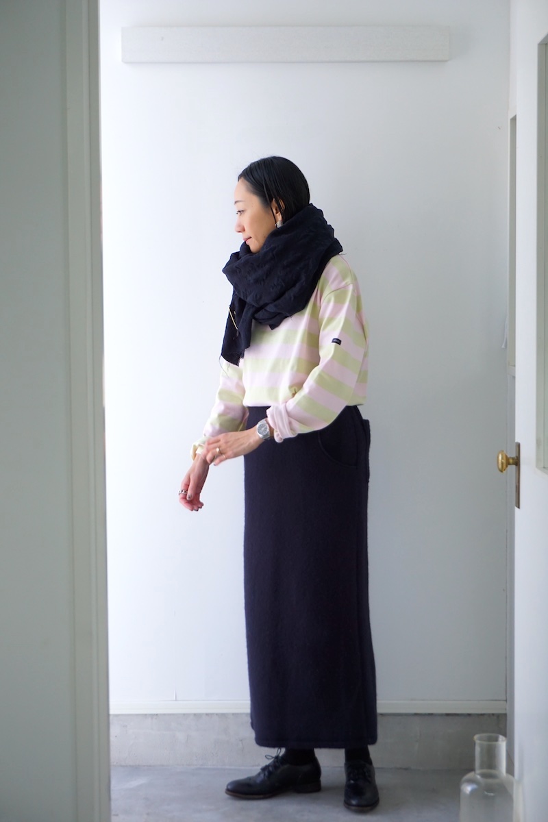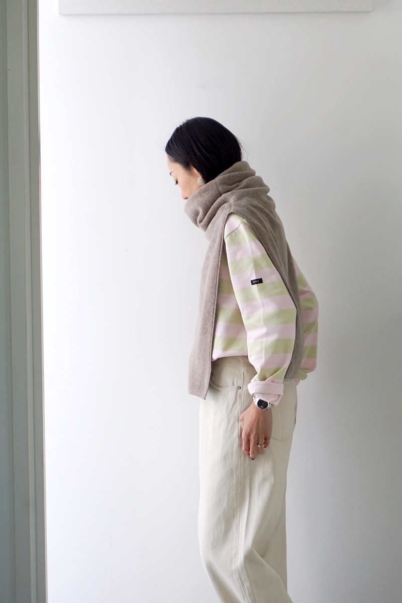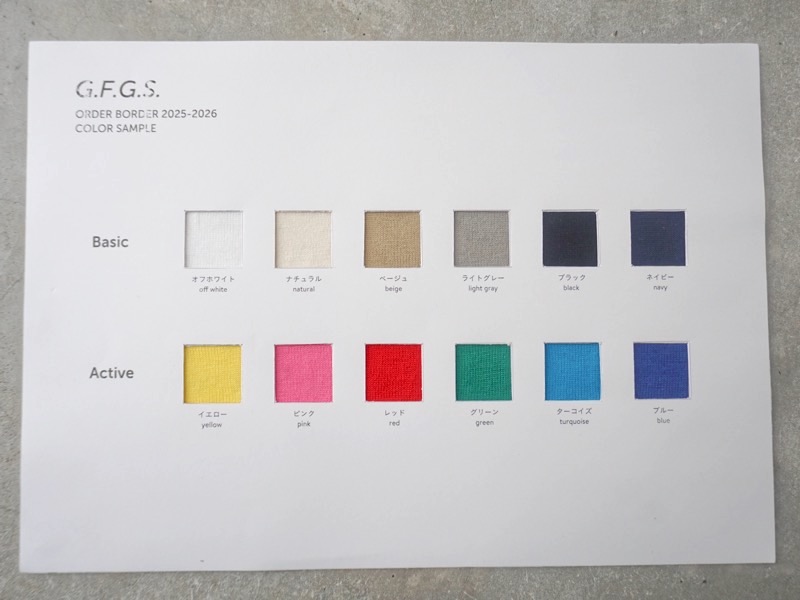 今回のオーダー品のお渡しは2月初旬。まだ寒さは残りますが、日差しが少しずつ柔らかくなり、冬の装いに軽さを加えたくなる頃です。G.F.G.S. のボーダーは、冬から春へ向かうその移ろいのタイミングにも寄り添い、差し色としても、春の明るい空気に合わせる一枚としても活躍してくれます。