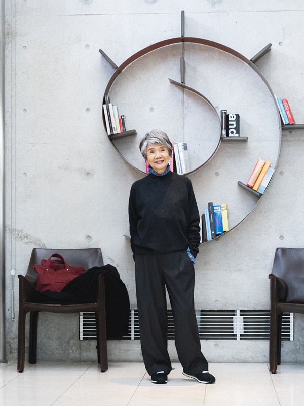 80代の母のモノトーンコーデ。フリル襟ブラウスがいい仕事してくれます