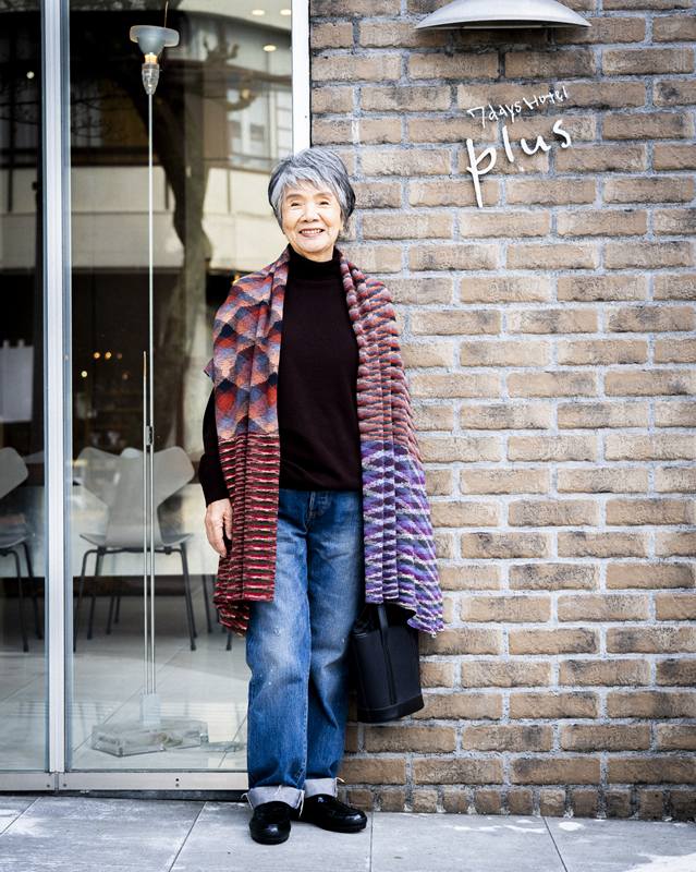 いろんなカラーがミックスされた大判ストールは、母が20年以上前に“清水買い”したものだそう。私たちの親世代は物を大事にするように言われ続けてきているので、このストールも今でもきれいな状態で、旅行などに重宝しているようです。
