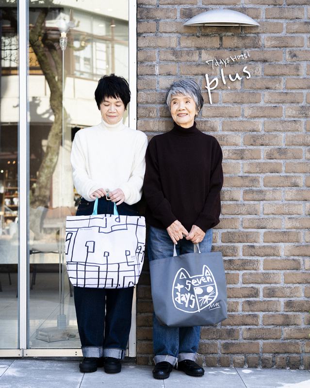 母は以前から、こちらのオリジナルショッピングバックを大愛用しています。使いやすさはもちろん、目をひく柄がアクセントになって、よくほめられるそう。今回うかがうと、新しくネコ柄が作られていました。