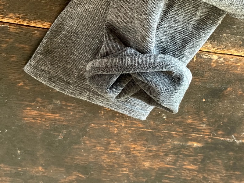 薄手のつくりなので、パンツのインナーとして着用できるのが何より嬉しいポイント。私は一年を通してパンツスタイルが多いので、インナーは、どんなに暖かくても分厚すぎると動きにくく、ちょっと扱いづらい。その点、meri ja kuuのシルクのレギンスはとても優秀。すっきりと薄手なのに、しっかりとした保温性を兼ね備えています。