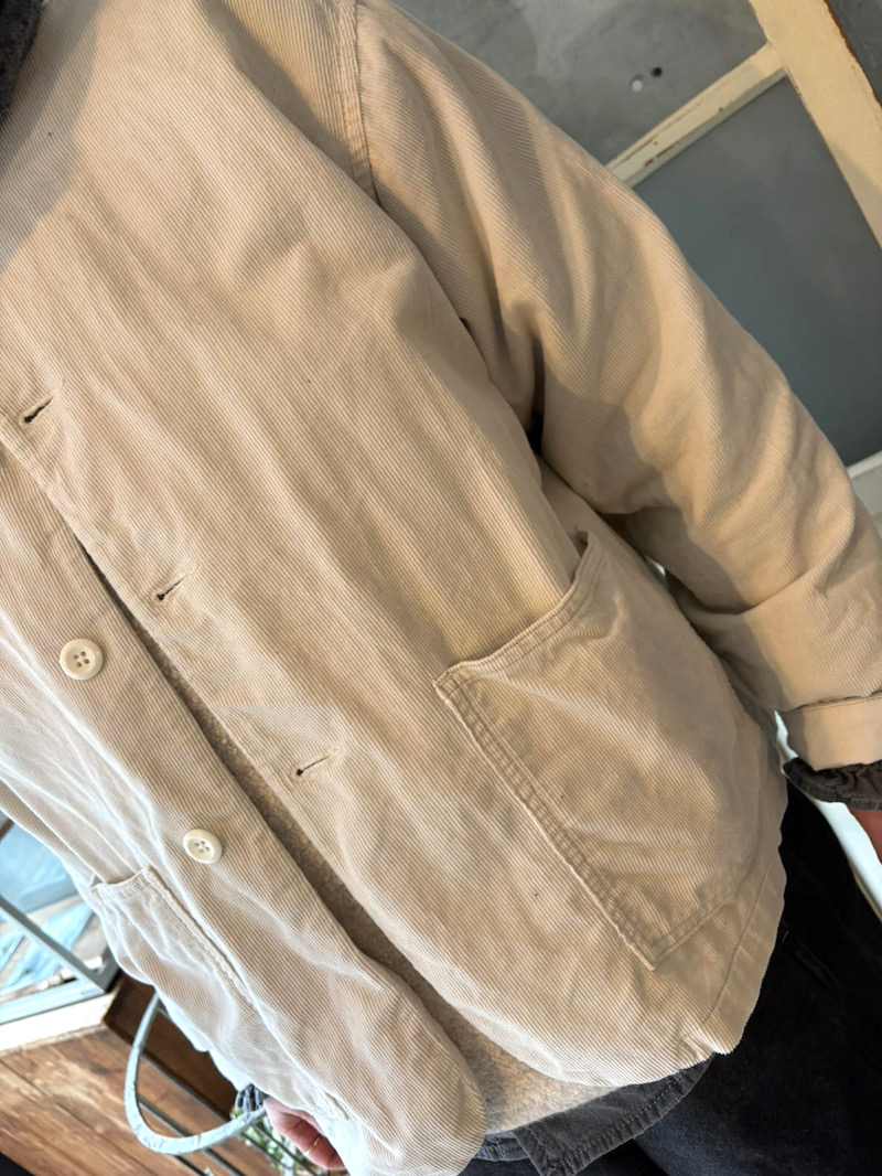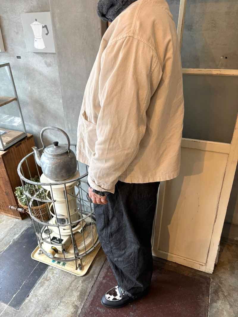 秋冬のコーディロイのジャケットは薄手ですが軽くて暖かい。デニムパンツはサイドに刺繍が入っていて型がきれい。夏にはプリントTシャツが大好評です。姉妹店の「grin(グリン)」さんはシックな装い。
