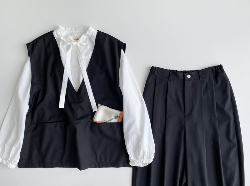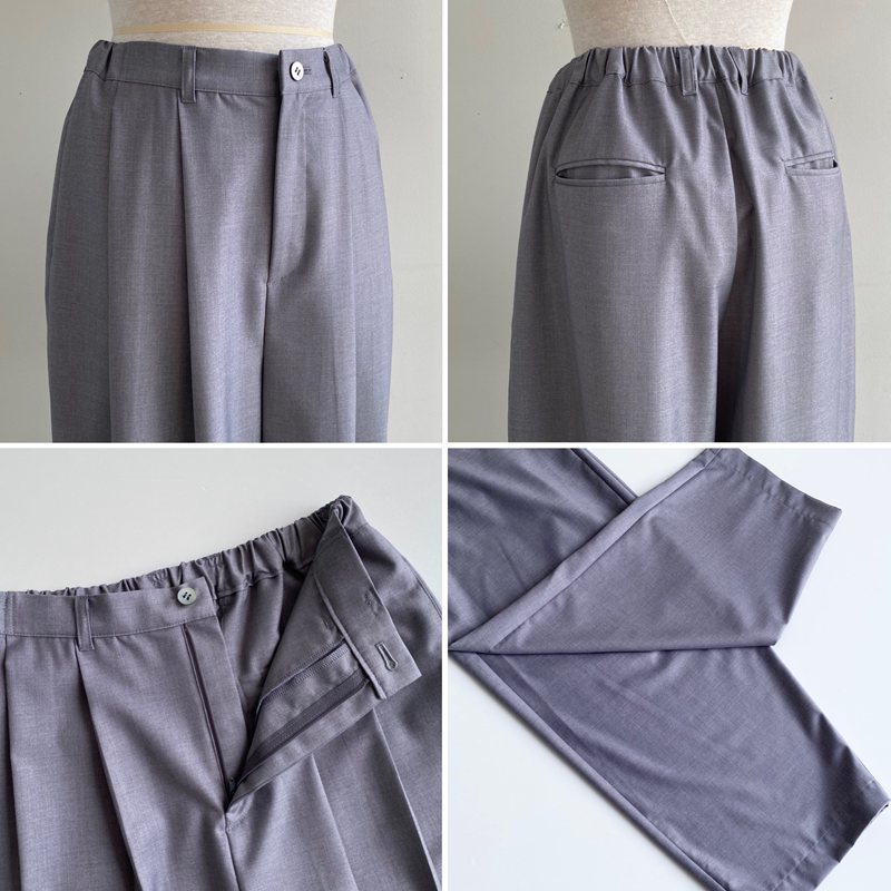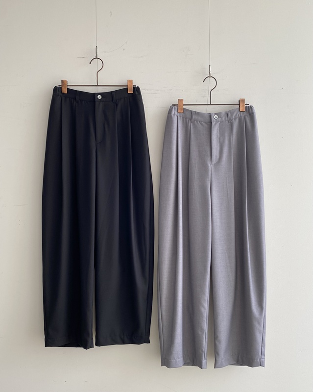 ゆったりしていて楽ちんで、名前の通り、細かいことを気にせず過ごせるパンツ。グレーとブラック、どちらも上質感のある落ち着いた色合いです。