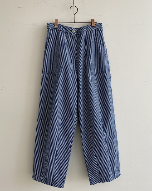 夏は白いTシャツ一枚にこのパンツを合わせて爽やかに。ヒッコリーの縦縞がさりげないポイントになります。