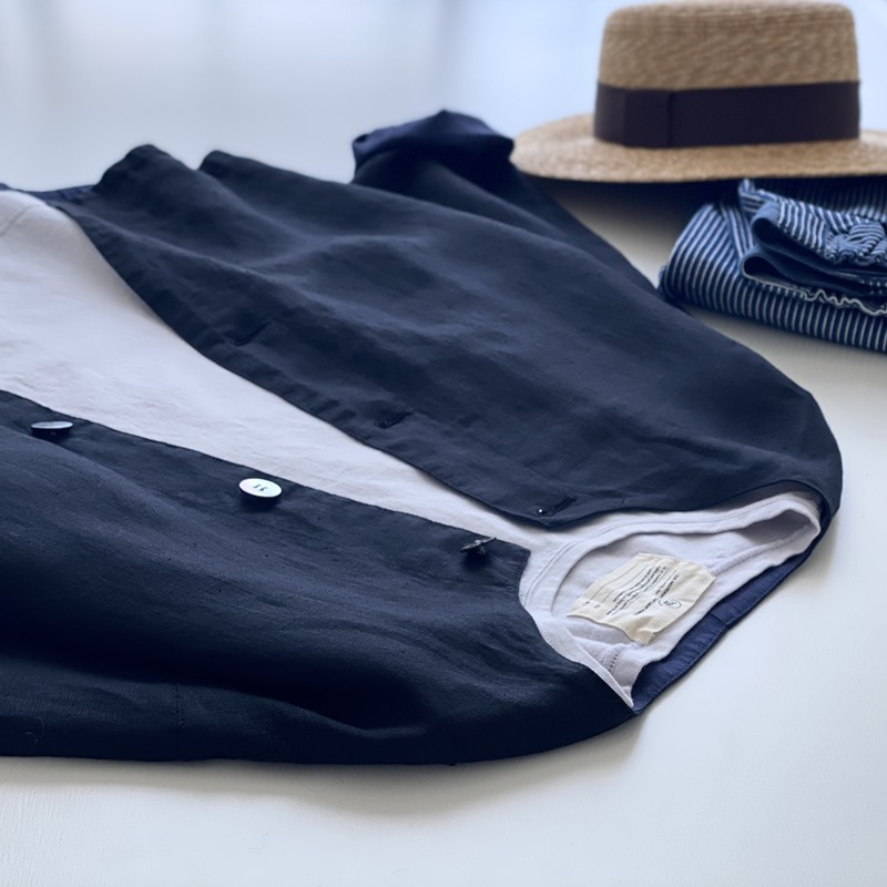 いかがでしたか? このヒッコリーパティシエパンツ。ヒッコリーの藍×白の爽やかさは、一年中活躍してくれますよ。そして今回、こちらでご紹介したジャケット合わせのコーディネートを、そのままご購入いただけるセットをご用意しました。