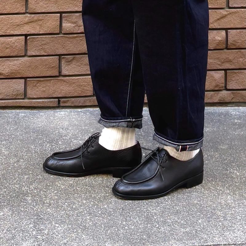 着用した人それぞれのはき方によってうまれる、鱗のアタリ。はき込むことで表面に出てくるアタリには、刺繍の存在が感じられます。なんだか自分だけのスペシャルな1本になりますよね。まさに育つとはこういう事なのか!と、どんどん愛着がわいていきます。