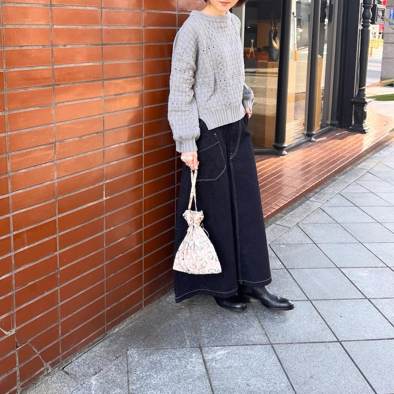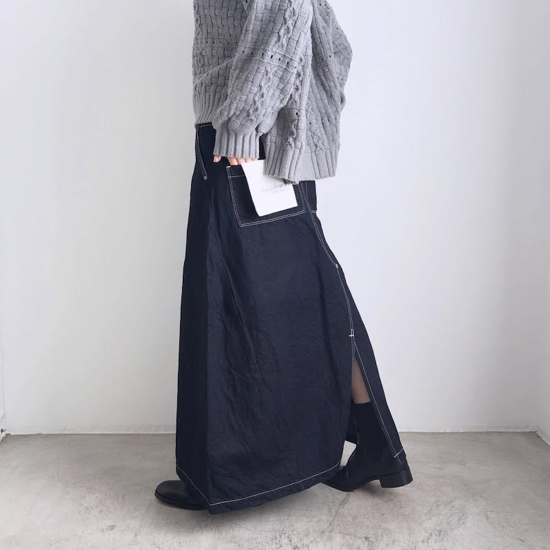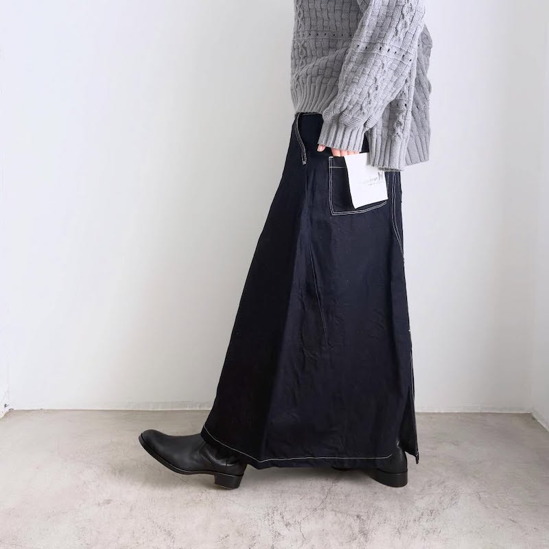 2019年に登場したロングスカートはミナさんのデニムへのこだわりはそのままに(2/1コラム掲載)、Aラインで立体感のあるシルエットが特徴です。