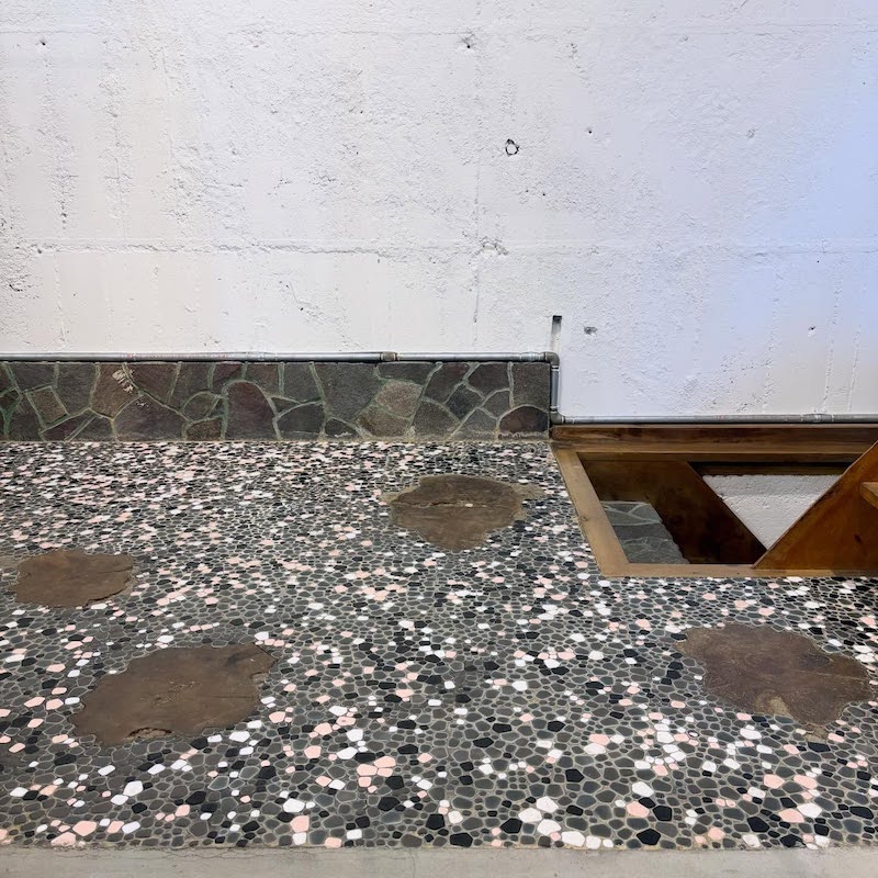 個人的に、驚きポイントは当時のまま残されている通路です。そもそも個人宅の廊下がタイルと木でコラージュされ、石垣のような装飾があるなんて、ただただ驚き!