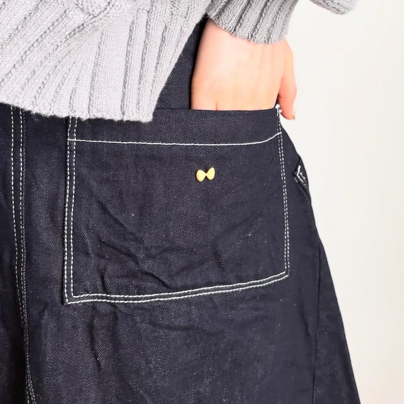 遊び心のあるフロントのポケット、バックポケットのカタチや位置も絶妙ですっきりと見せてくれます。そして密かにテンションが上がる、アイコンでもあるチョウチョのモチーフ。さり気なくも、やっぱりあると嬉しいですよね。