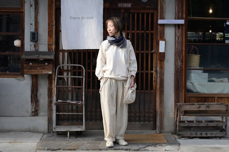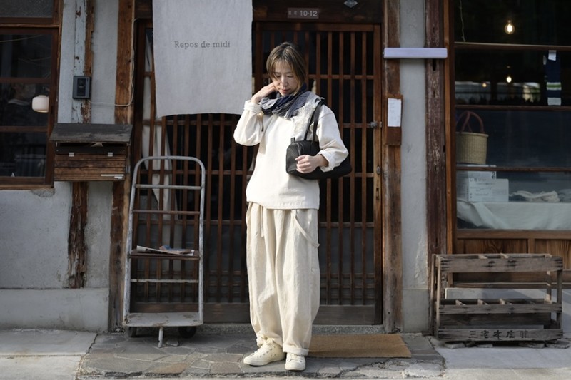 大阪・枚方市の「Repos de midi(ルポデミディ)」より昨日に続き、私たちの定番「サロペットパンツ」をベースにご紹介です。