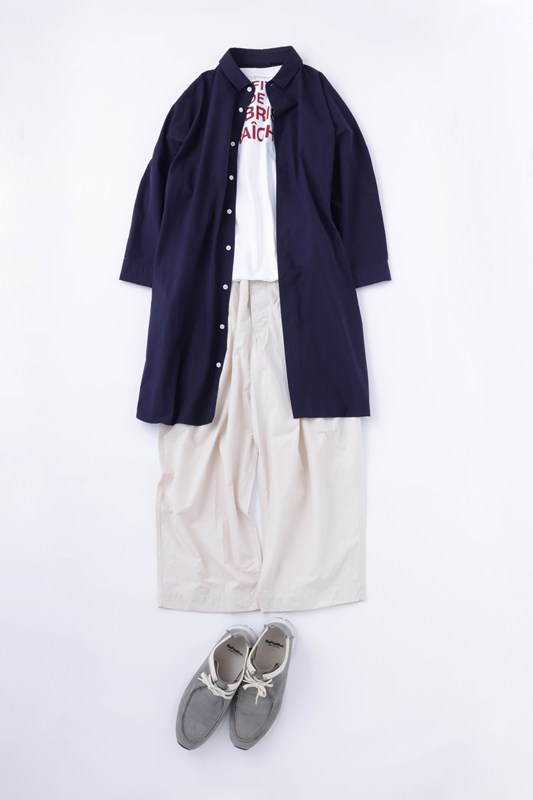 「暮らしのおへそ」編集ディレクター・一田憲子さん×「HUIS(ハウス)」コラボの「おへそロングシャツ」が登場しました。