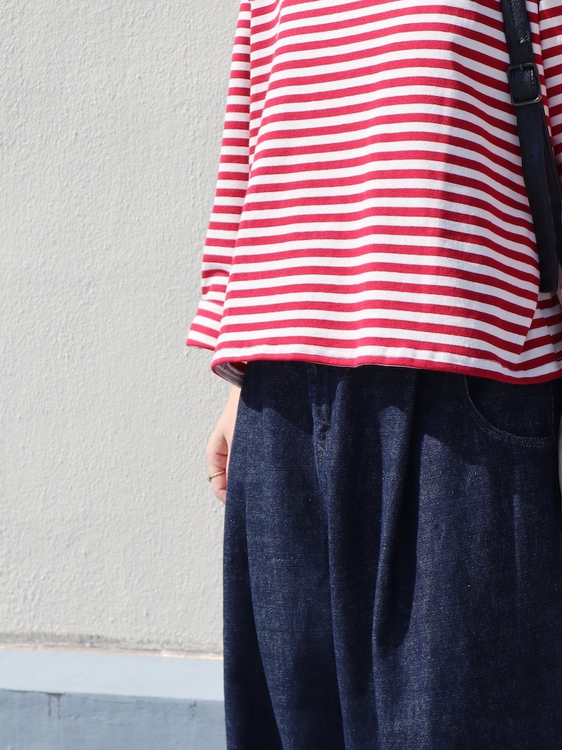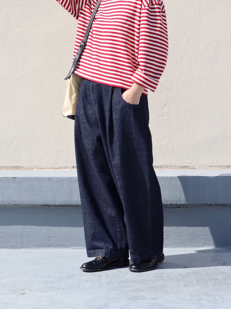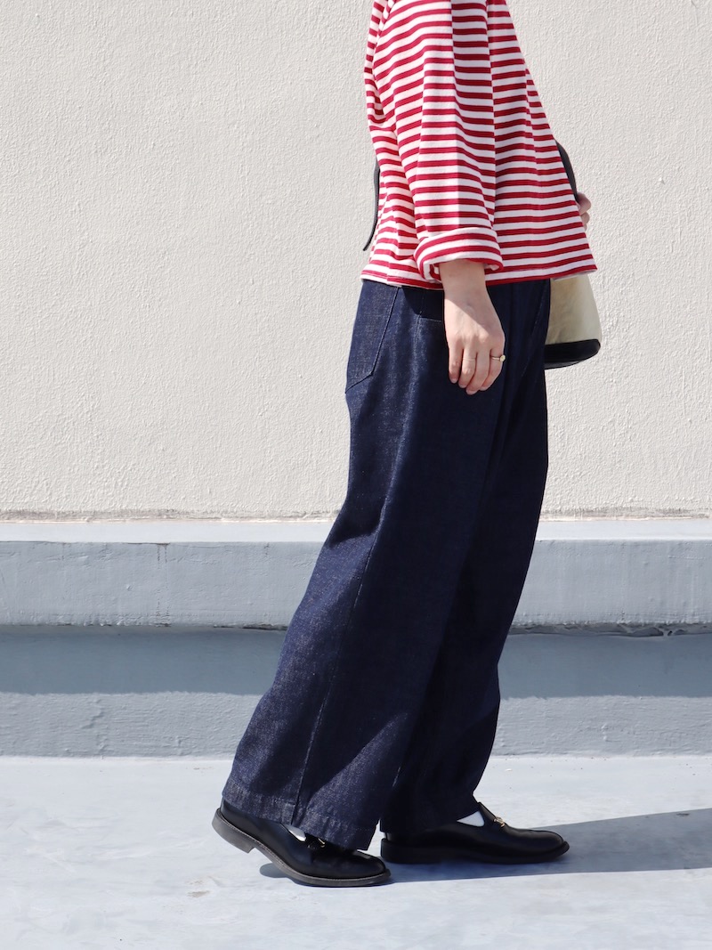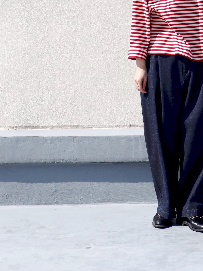 普段は柔和な物腰で、キラキラとした笑みをたたえている彼女が、このパンツを目の前にした途端、熱量たっぷりなマシンガントークを繰り広げてくれました。その姿にギュッと心を掴まれて以来、このパンツは当店の揺るぎない定番となったのです。