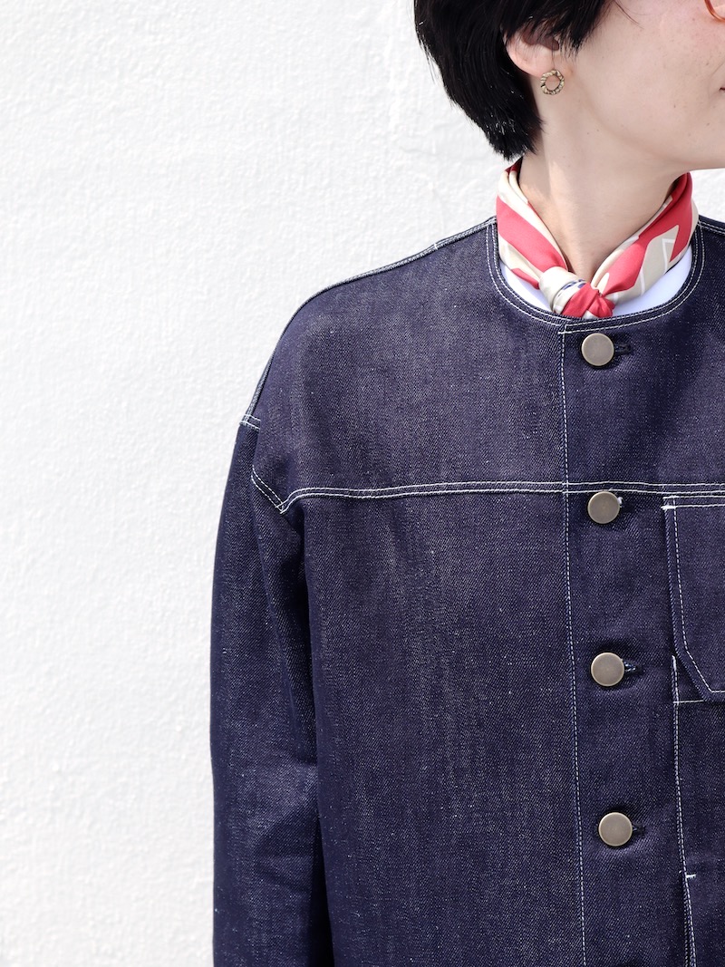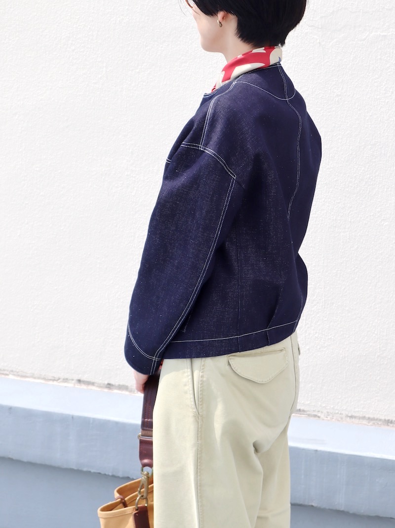 ノーカラー好きに送るデニムブルゾン