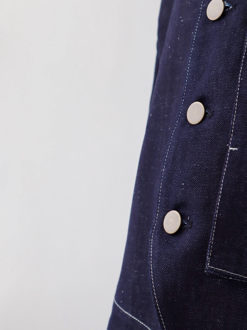 世界各地の良質なコットンとリネンで織り上げた、10ozのデニム生地。袖を通した瞬間に心がほぐれてしまう、やわらかなタッチです。これにて①は解決。