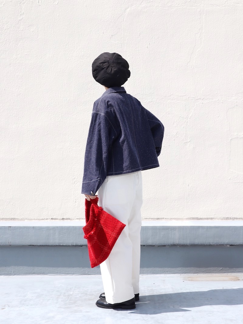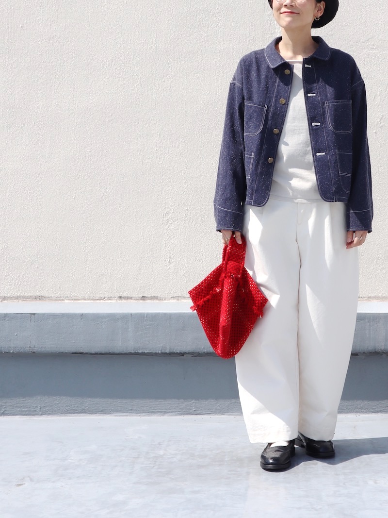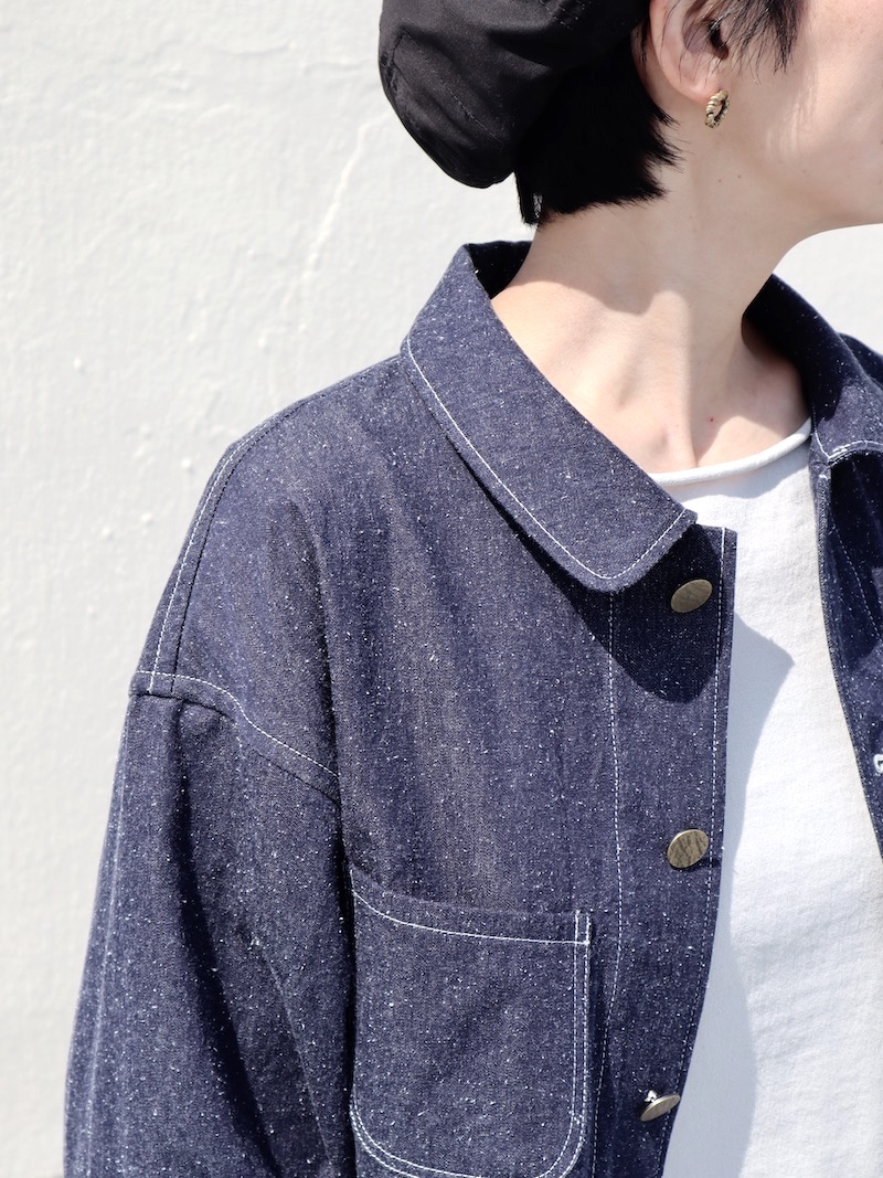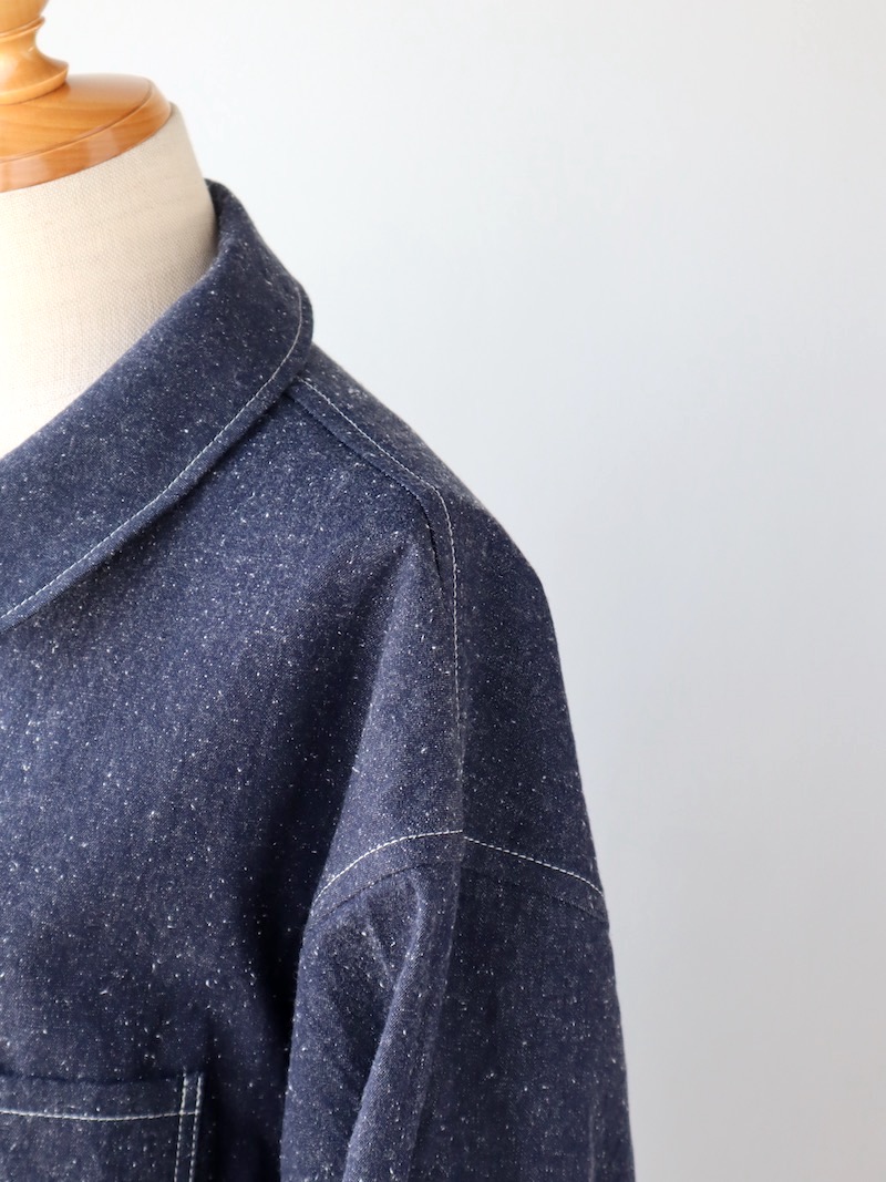 コットンの安心感に、シルクのほのかな光沢とやわらかさが重なり、ワークウェア特有の野暮ったさを微塵も感じさせません。まるで無重力かのような、肩コリ知らずな着心地です。