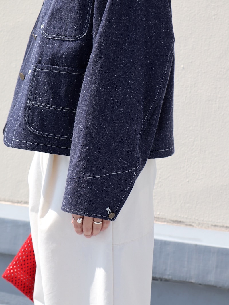 そんなことを思わせてくれたのが、この一着です。ヴィンテージのカバーオールをベースにした、古典の気配がほんのり香るワークジャケット。決して懐古的になりすぎることなく、現代の空気にマッチするように、サイズバランスを再構築しました。