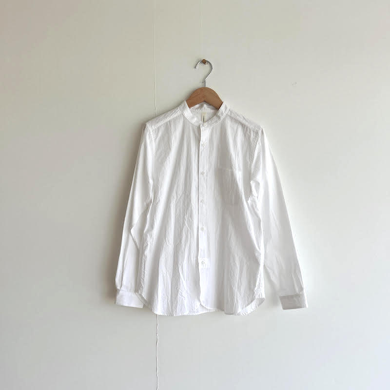 ちなみにCOMMUNEはシャツも。こちらもベーシックなコットン100%のスタンドカラーシャツ。見ていただくと分かる仕立ての良さ、個人的には洗いざらしで羽織っていただきたいシャツですね。