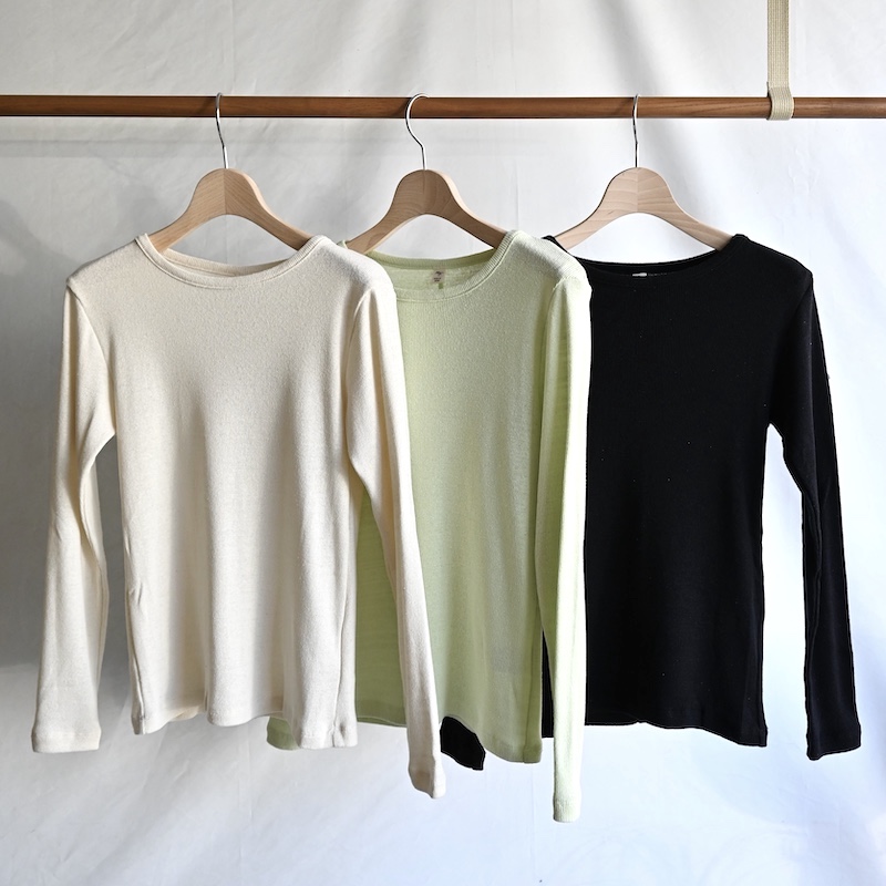 また、me.にはこのシルク素材以外にも着心地良く、さりげなくやさしげで、ふだんに使いやすいカットソーが色々と揃っていますので、よかったらオンラインショップの方でご覧になってみてくださいね。