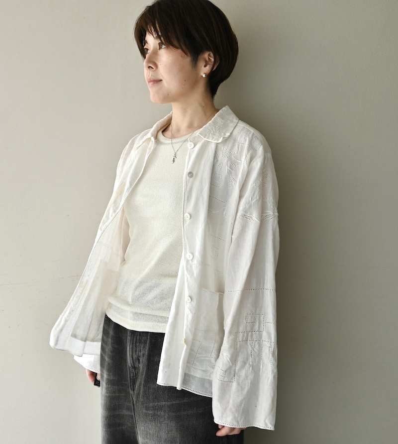 インナーだけどいかにもインナーにならない素材感ですので、写真のようなシャツやカーディガンなど、これからたくさん活躍する軽い羽織ものの中に合わせていただくにもおすすめです。