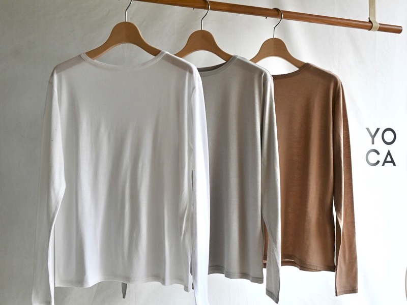 寒いな〜と感じる時はほんのりあたたかい感触、体が暑いかな〜と感じている時はさらっと涼しいような感触、どんな時も不快感がないという不思議な着心地を自分でも経験し、先にあったような丁寧で誠実なものづくりの背景とともに「たくさんの方に伝えていきたい!」と思いました。